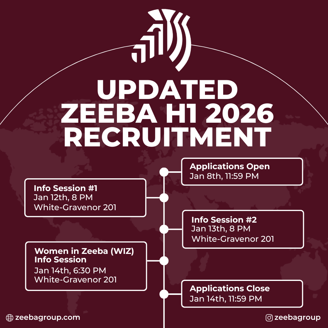 Our team recruits new analysts at the start of every term. We encourage prospective candidates to learn more about our process and reach out to current members of our team before applying. For any questions, please reach us at zeebainvestmentgroup@gmail.com.